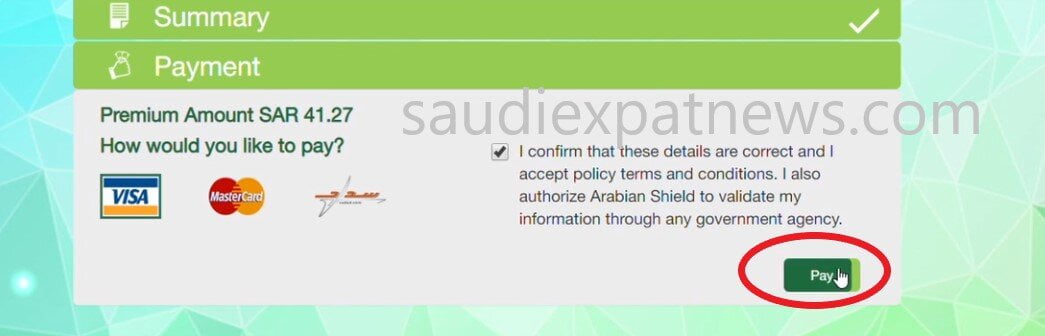 Press on PAY and Enter your Credit or Debit Card information to complete the process. Once the payment is completed the policy will be activated shortly.