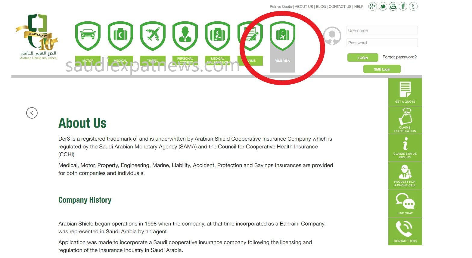 Here we are discussing how to issue a health insurance policy from the Arabian Sheild Cooperative Insurance Company for Saudi Visit visa renewal. (Similarly, you can get insurance from any other insurance company)
